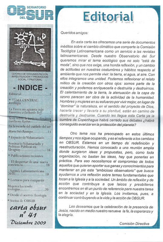 Tiempo Latinoamericano (Argentina), Vida Pastoral (Argentina), Acción (Paraguay, nº 302, marzo 2010),